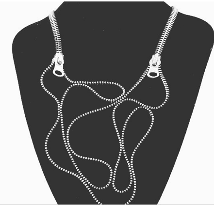 Metal fermuarın şeritlerini keserek oluşturabileceğiniz değişik ve göz alıcı bir kolyeyi sizde evinizde kolaylıkla yapabilirsiniz. Dikkat ederseniz kolye yapımında kullanılan fermuarın iki tane kürsörü bulunuyor. Eğer ki bu fermuardan almak isterseniz bu fermuar M8 kombi metal fermuar tipidir. Bu şekilde arama yaparsanız daha rahat bulabilirsiniz.